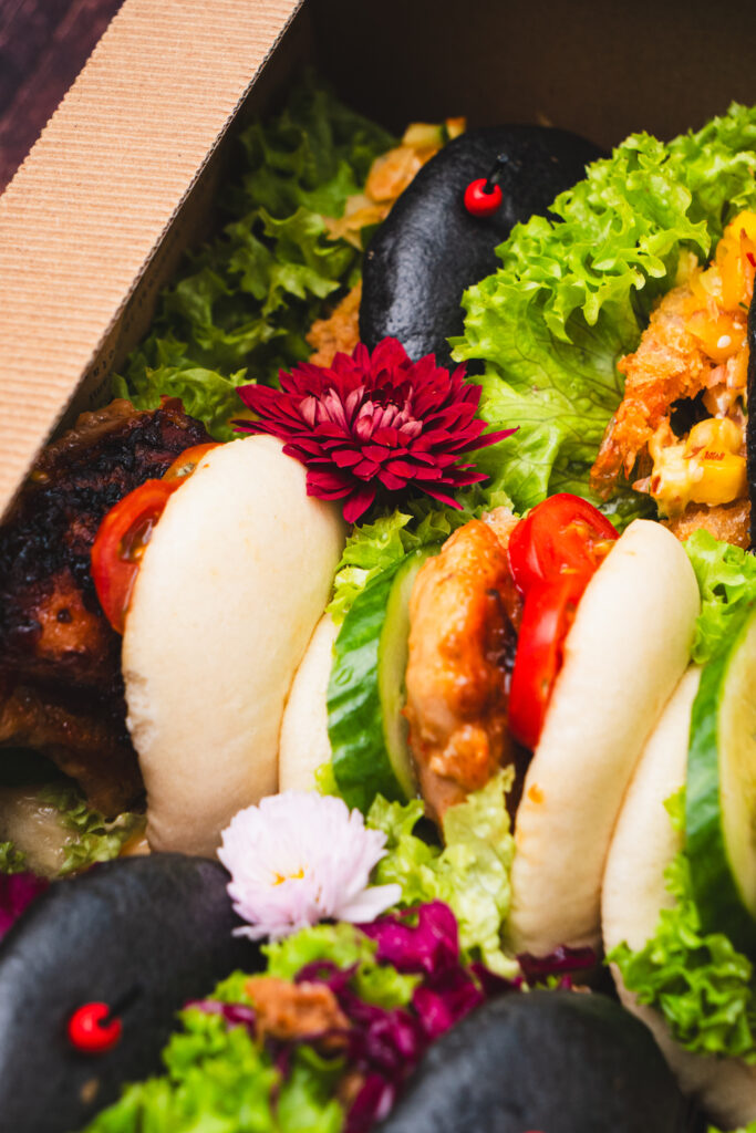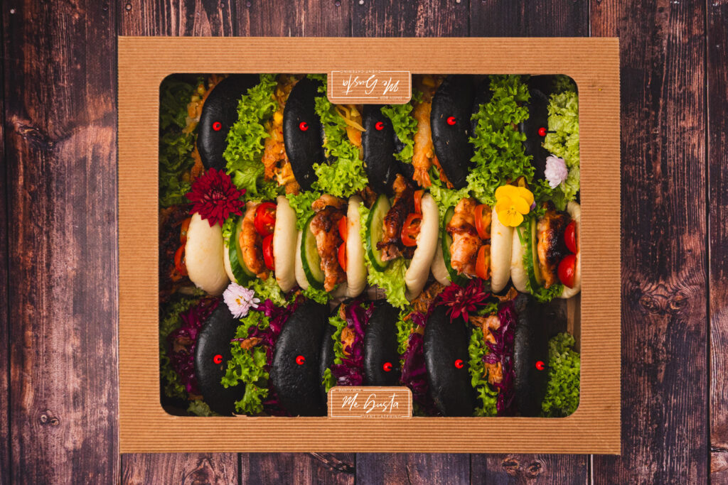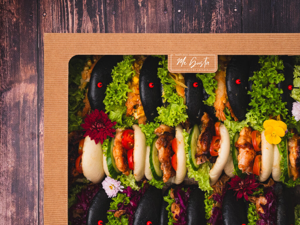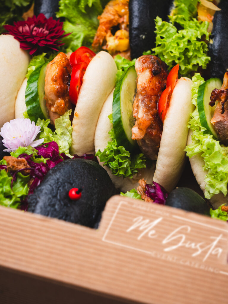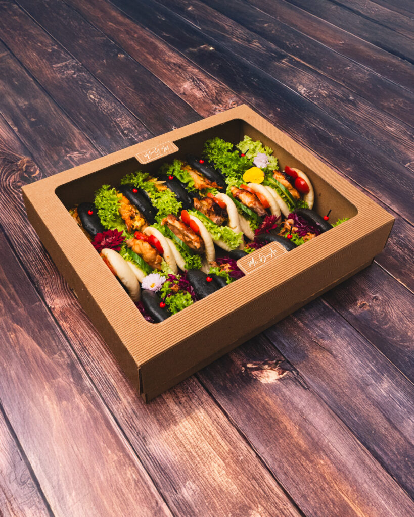 Box BAO to efektowne, parowane bułeczki, które łączą puszystą strukturę, chrupiące dodatki i intensywne sosy — idealne na eventy, spotkania firmowe i domowe przyjęcia.