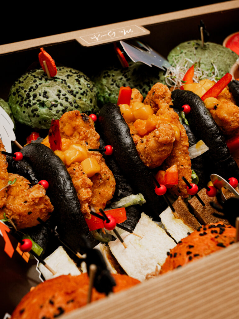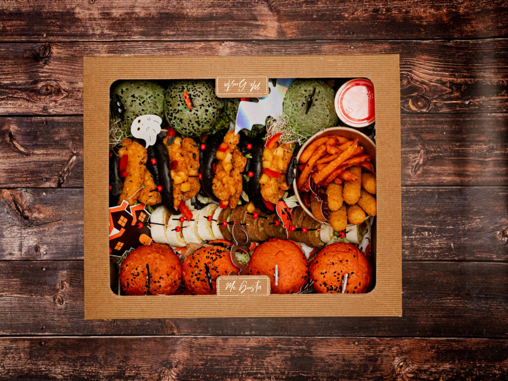 Box Halloween to mroczna uczta dla odważnych — pełna zaskakujących smaków, kolorów i faktur, które budzą dreszcz emocji. Idealny na imprezy firmowe, wieczory tematyczne i halloweenowe spotkania, gdzie jedzenie staje się częścią zabawy. Każdy kęs to gra z wyobraźnią i smak, który zaskakuje bardziej niż najlepszy halloweenowy żart.