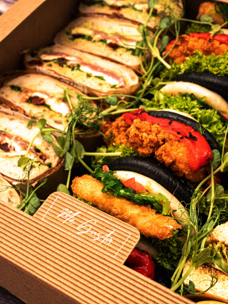 Box Kanapki Świata to autorska kompozycja 18 sycących przekąsek, które łączą w sobie egzotykę Azji, amerykański klasyk i włoski temperament. To idealny wybór, gdy chcesz postawić na różnorodność i zaskoczyć niebanalnym menu.