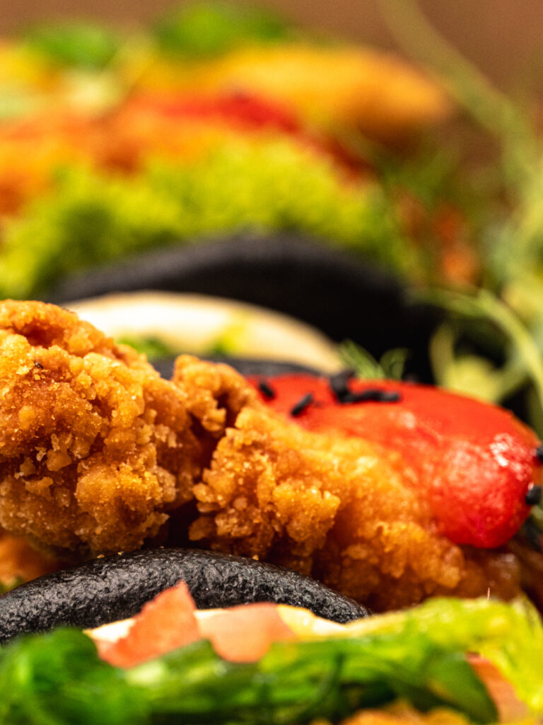 - Czarne Bao ze Stripsami – efektowne, ciemne bułeczki z soczystym kurczakiem i przełamującą smak papryką konserwową.